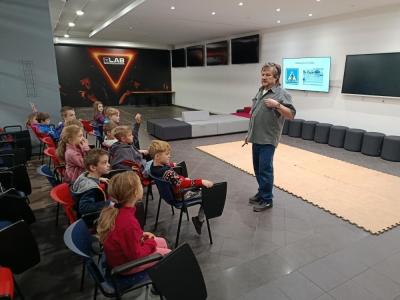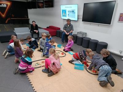 Nejprve se nás ujal pan lektor, který nás provedl úskalími a nástrahami cestování po Praze. Poté jsme si ve skupinkách sestavili vlastní dráhu a vyzkoušeli si roli programátorů – řídili jsme mašinky a vagónky podle svého přání. To nás ohromně bavilo.