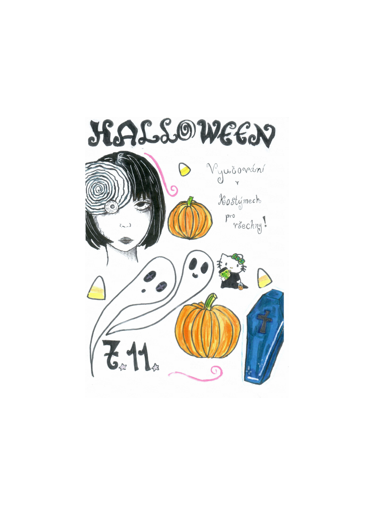 Chceme vám oznámit, že pátek 7. listopadu je zasvěcen strašidlům a Halloweenu. Tento den se může každý, kdo bude chtít, převléknout do kostýmu a sledovat kouzelnou proměnu celé školy.