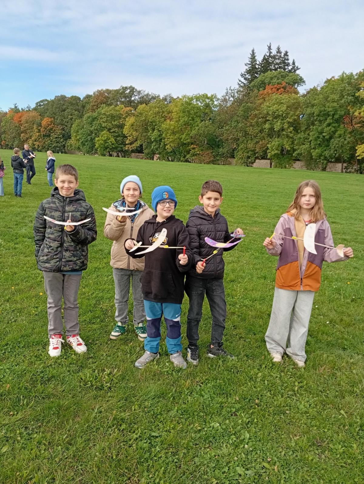 Ve čtvrtek 16.10. pouštěly děti z 5. B na Vypichu svá letadélka, která vyrobily v hodinách výtvarné výchovy. Vítr foukal příznivý, a tak se letadélka krásně vznášela.