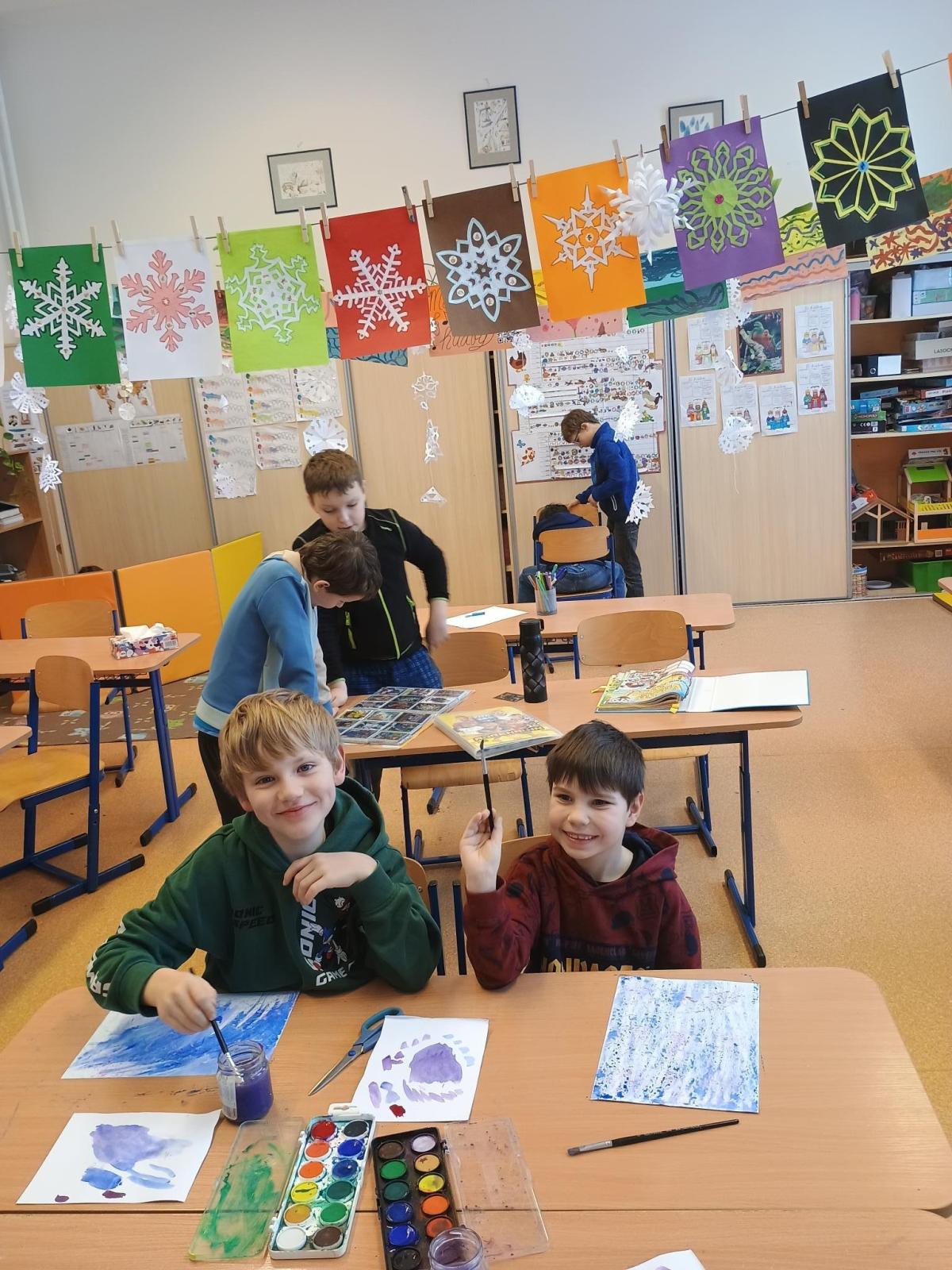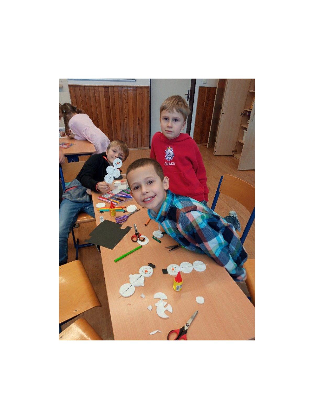 Děti v družině nezahálí ani v zimních měsících. V prosinci jsme si všichni užili besídku s nadílkou, radost z dárečků byla veliká. Užívali jsme si první sněhové radovánky a hry s kamarády. Samozřejmě jsme také kreslili a vyráběli dárečky pro rodiče. Všem se moc dařilo a pěkně si procvičili trpělivost a zručnost.