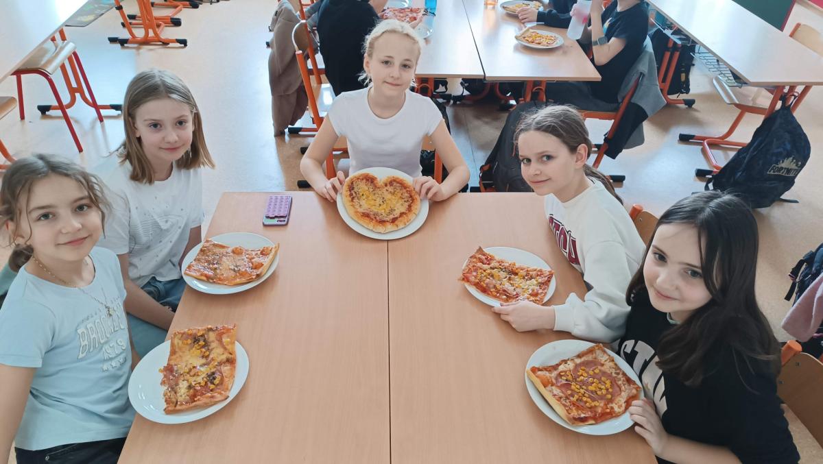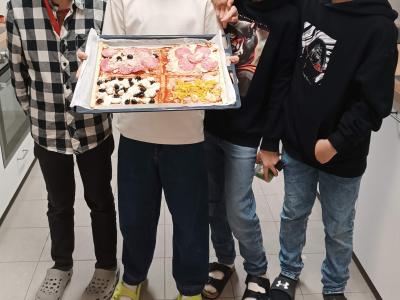 Třída 5. A si ve cvičné kuchyňce vyzkoušela přípravu vlastní pizzy podle své chuti a fantazie. Při krájení pizzy si děti zároveň zopakovaly zlomky a spojily tak vaření s matematikou.